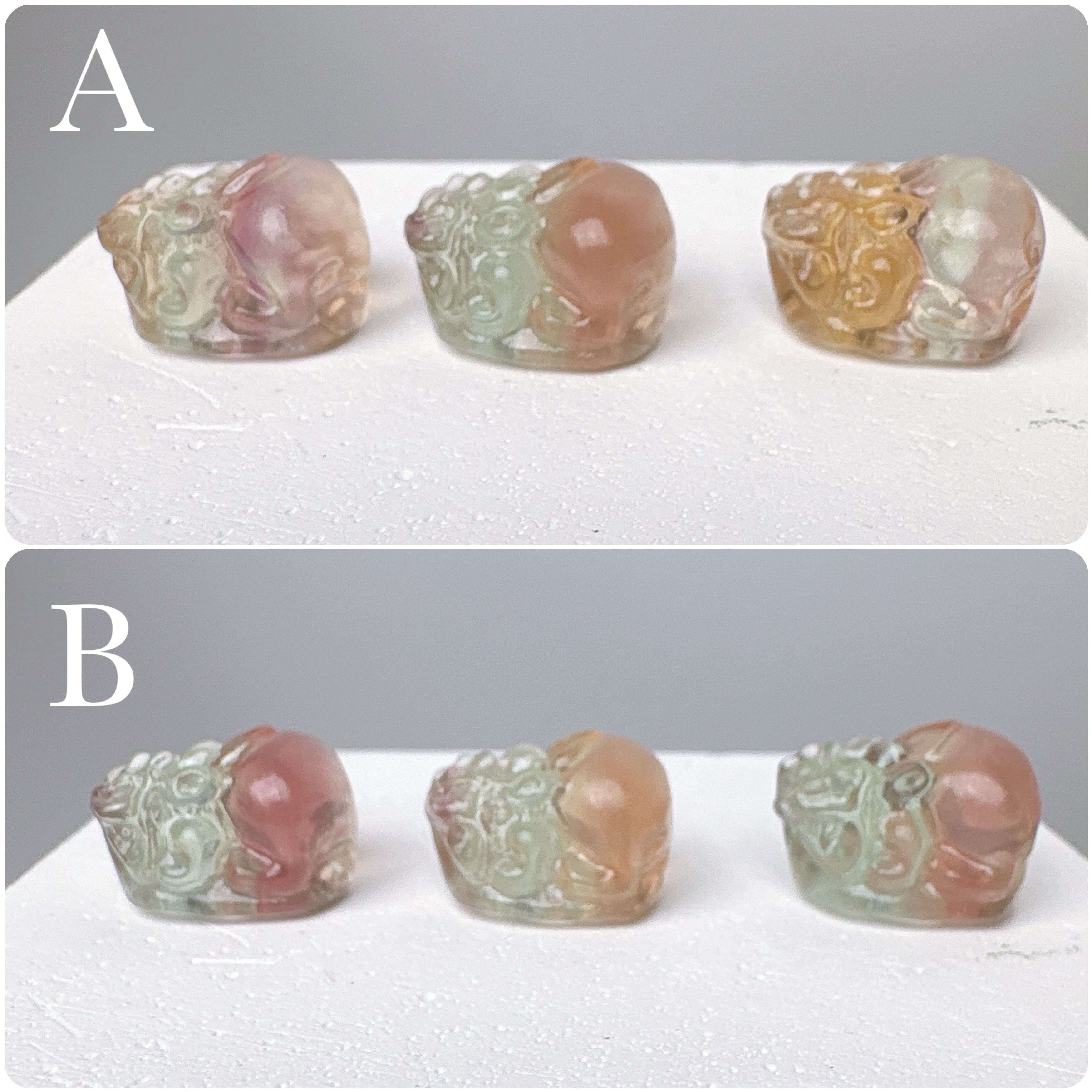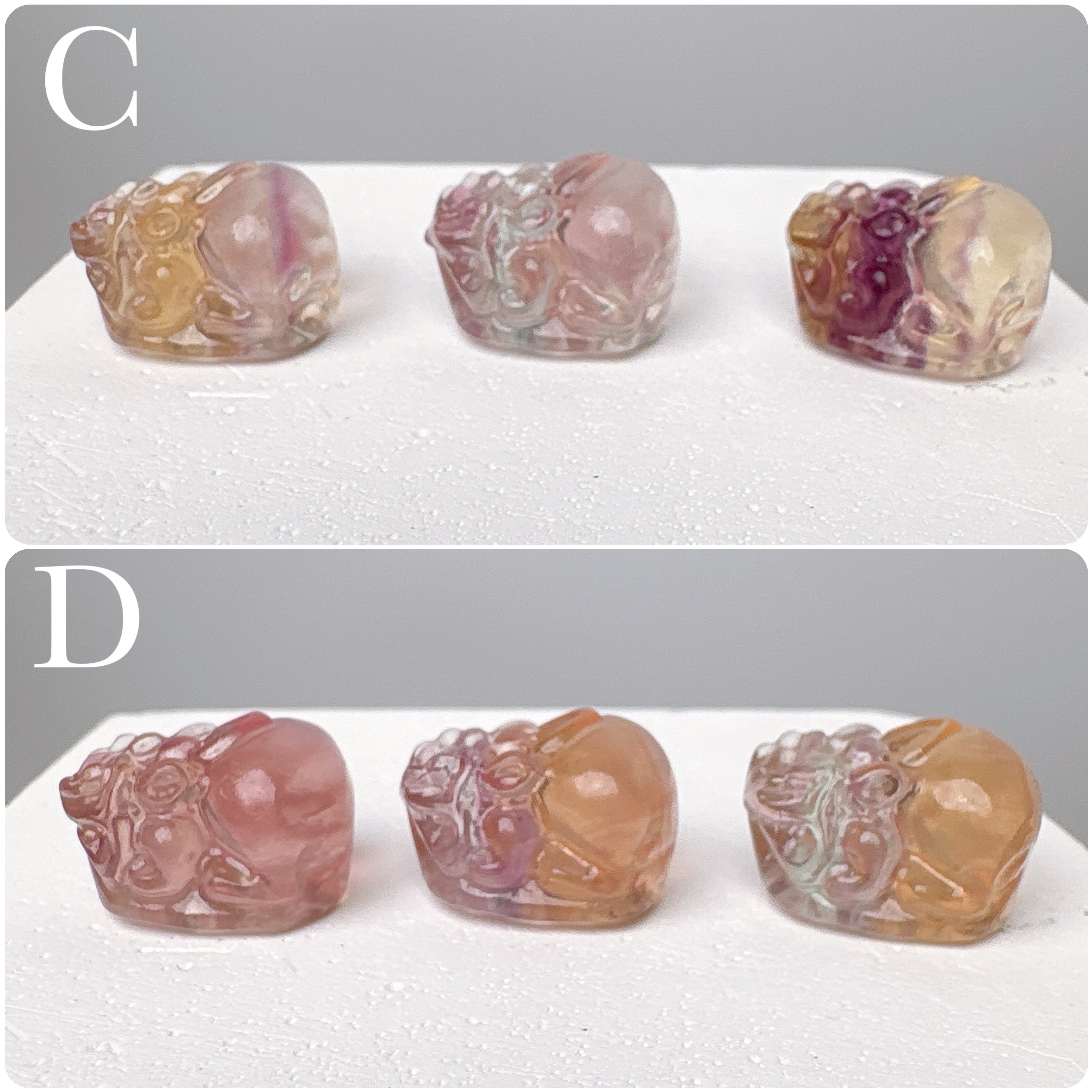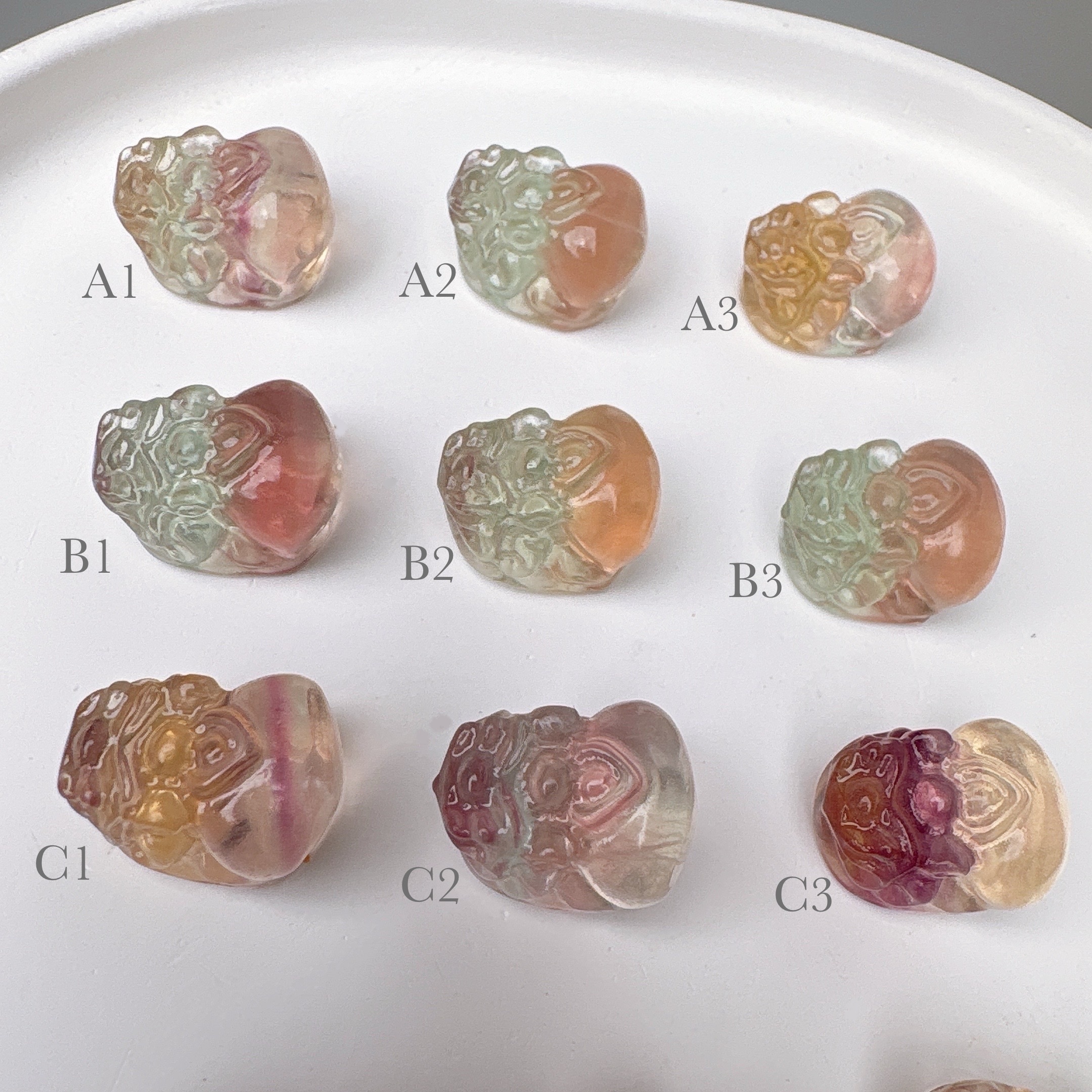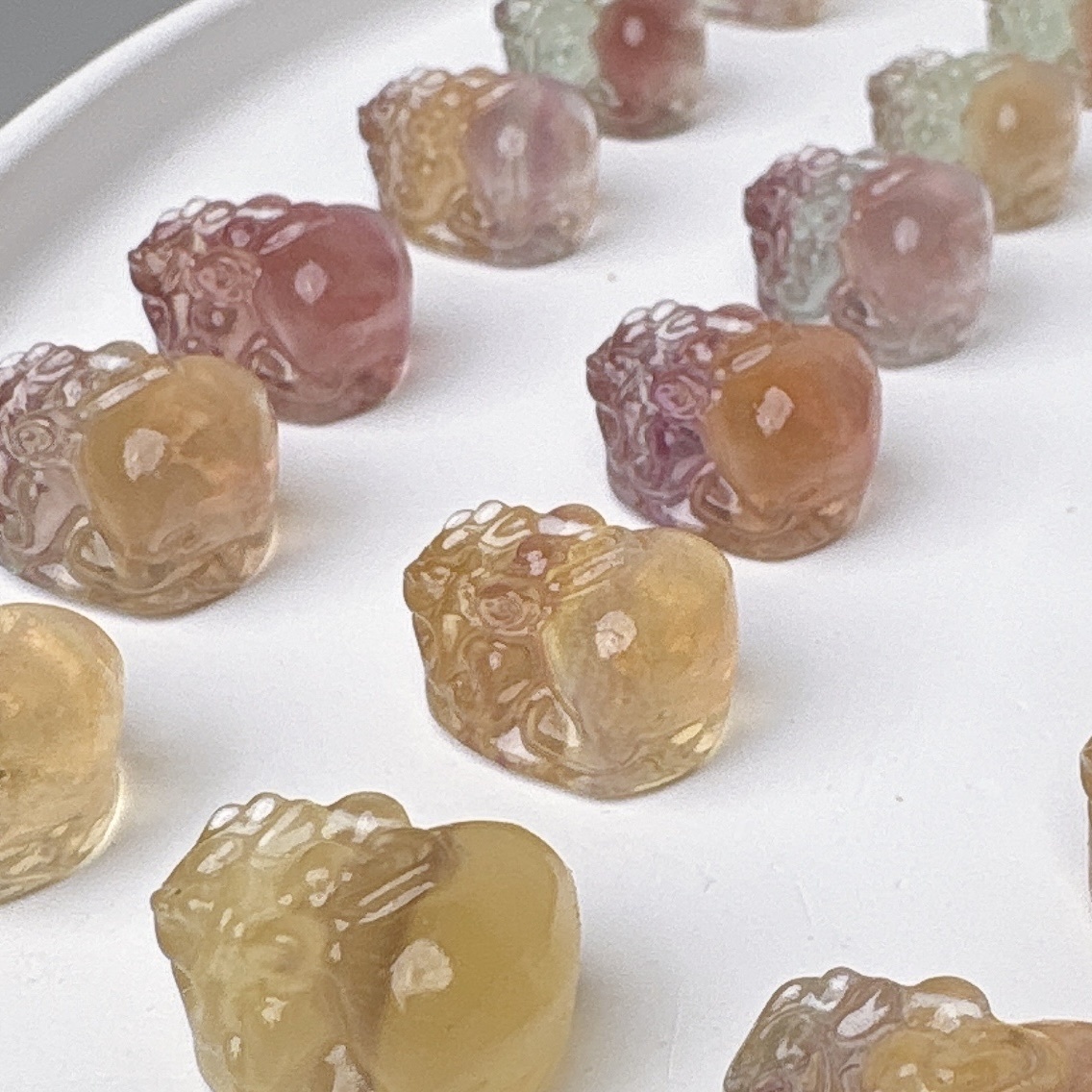 螢石色彩繽紛,被譽為「智慧之石」,能幫助我們激發靈感、直覺、決策力,雕刻為貔貅,讓招財之路更精準、更有效率!
