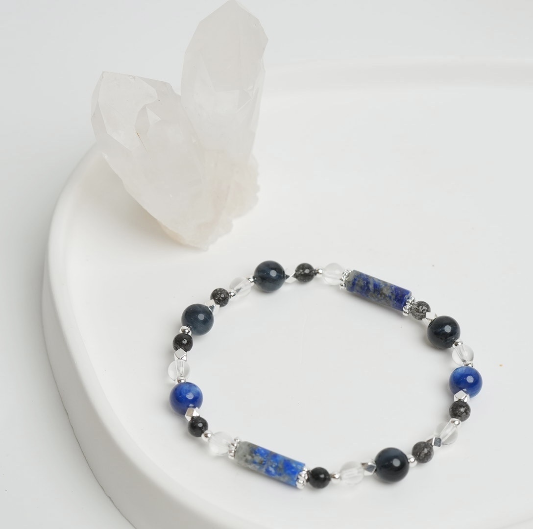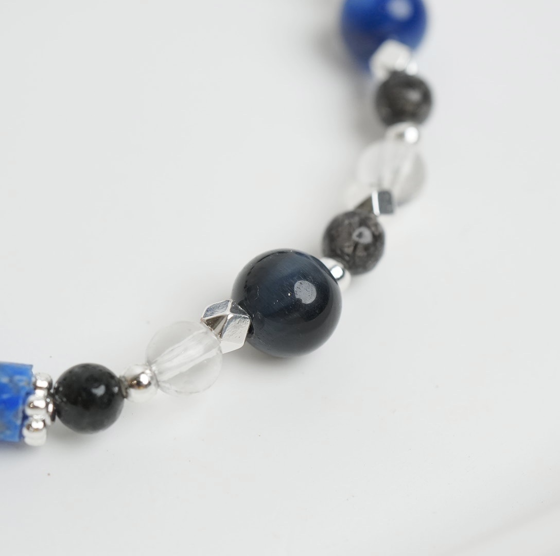 B款:8mm 青金石/藍電虎眼+ 6mm黑髮晶/白水晶《推薦給男性朋友!》
