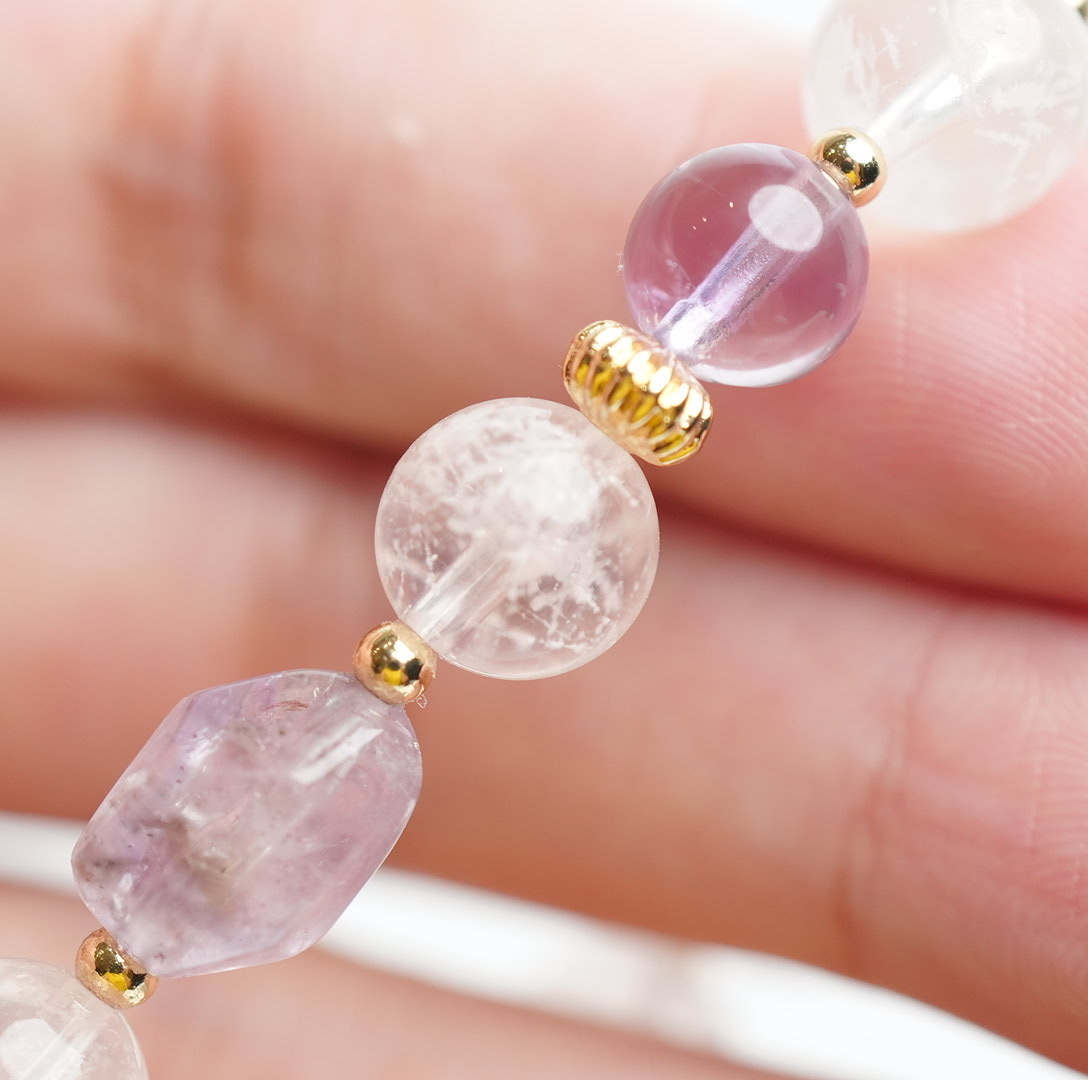 天然水晶、礦石會有冰裂、雲霧、小黑點等現象,才能造就出獨一無二的模樣;水晶珠在打磨時難免會有平頭或小缺角,介意者自行斟酌喔!